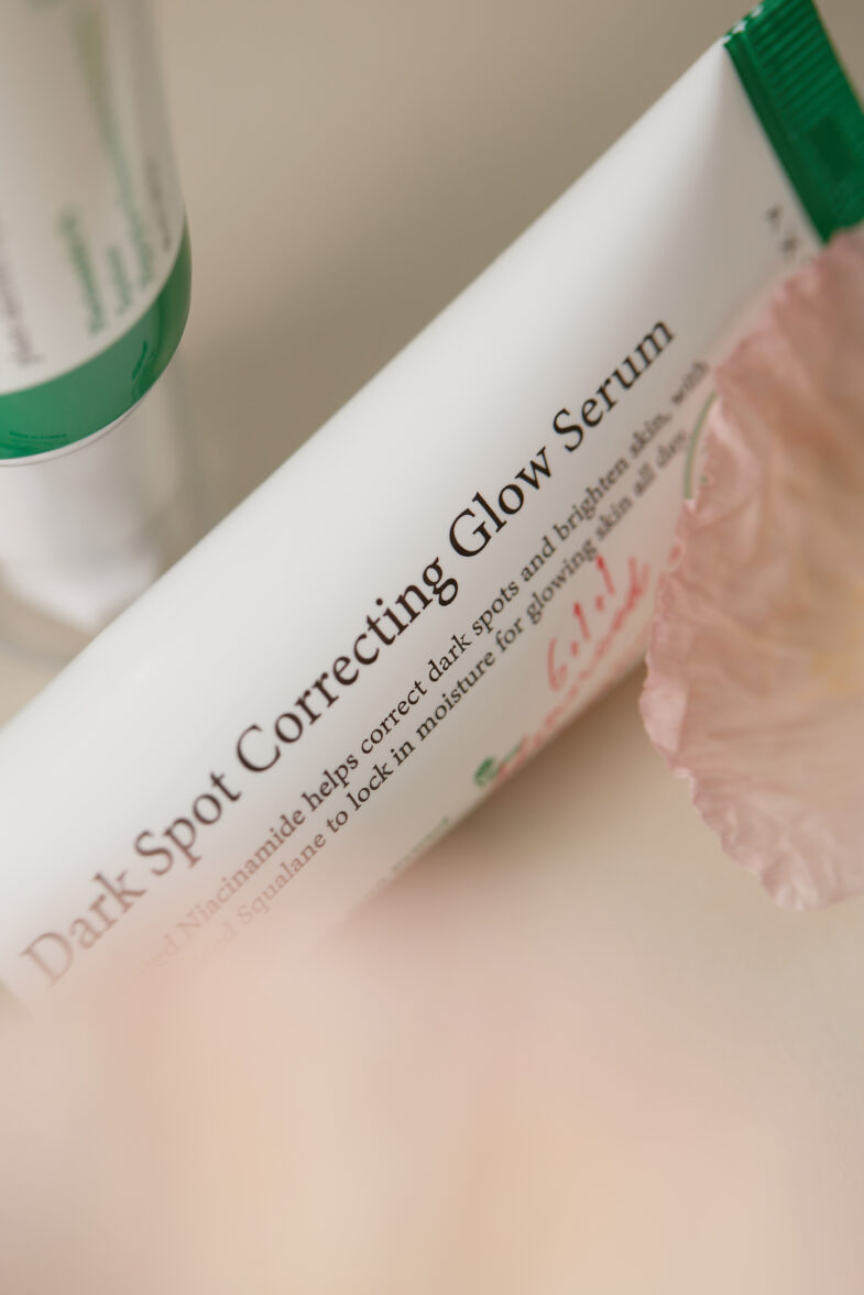 The Dark Spot Correcting Glow Serum effectively targets dark spots and improves skin clarity.